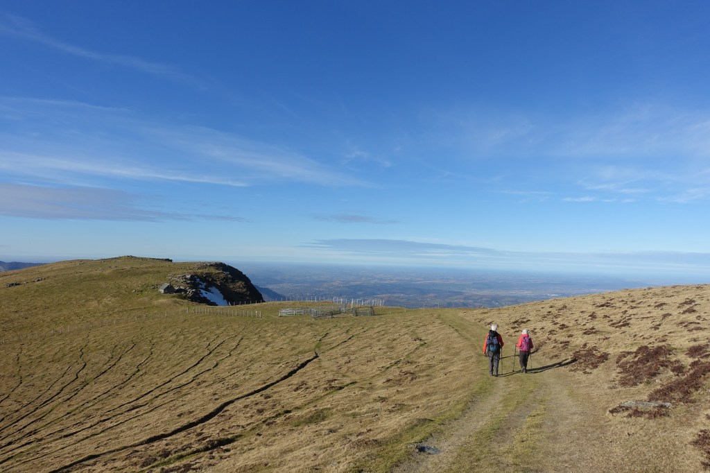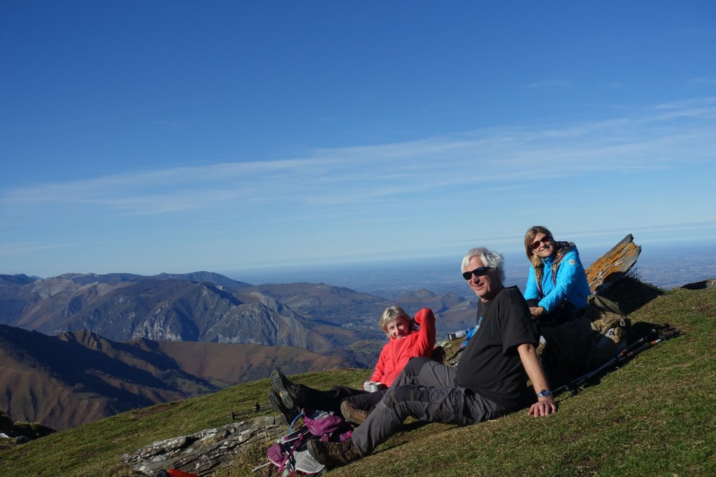 Après avoir bavardé avec un petit groupe qui s’arrête à la cabane d’Auzu, nous choisissons de suivre la crête vers le col d’Anoures, et continuons jusqu’à Niouères (2 h 30 depuis le départ) où nous pensions avoir un petit coin abrité pour partager la galette des rois de Françoise C, le chocolat de F de P, le Kouglof de Martine et le vin rouge de Richard… mais il fait froid et l’envie nous reprend de marcher.