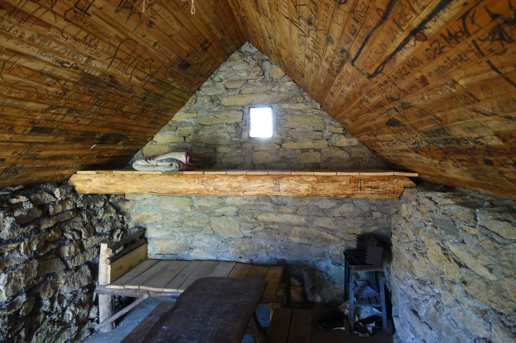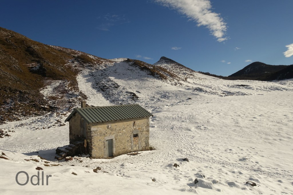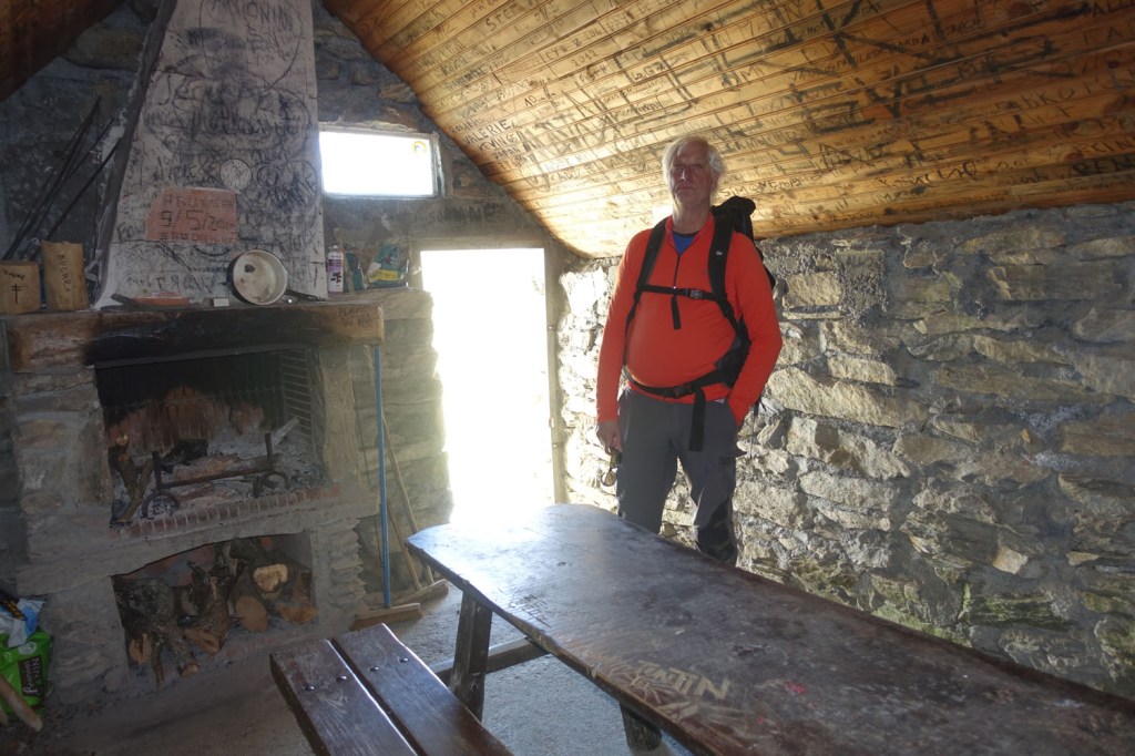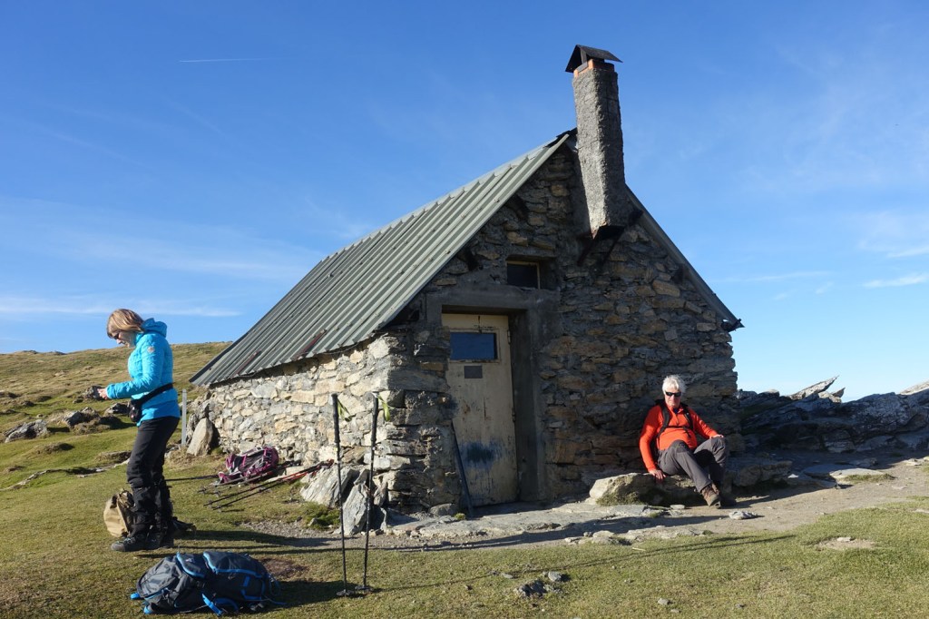 Une jolie cabane bien aménagée avec cheminée et bas flancs en bois se trouve au Col . De là, on atteint le sommet par une crête très arrondie . La montée totale aura pris 2 h 30