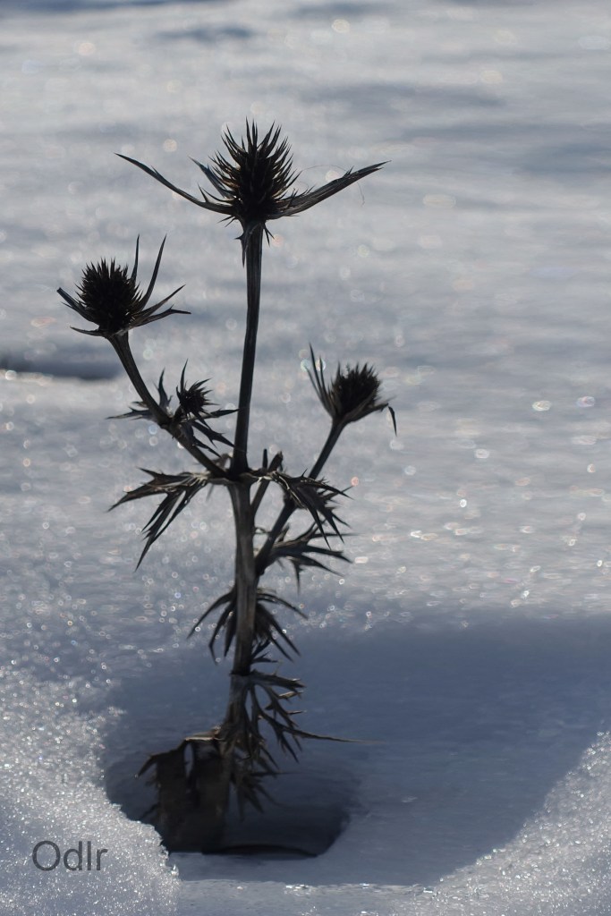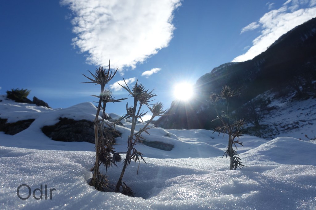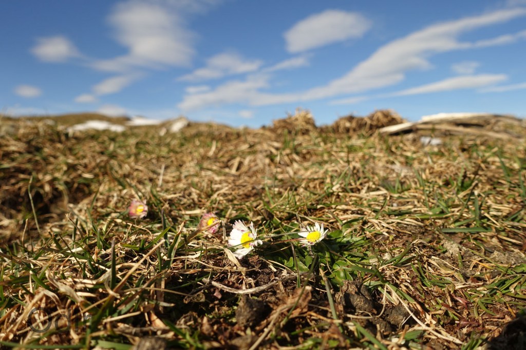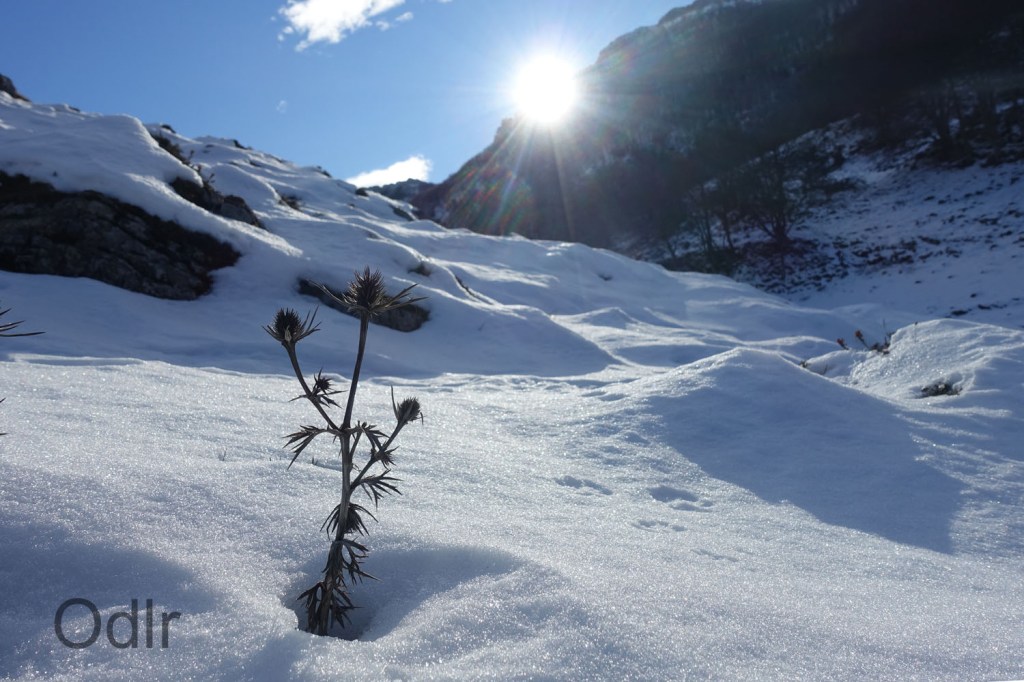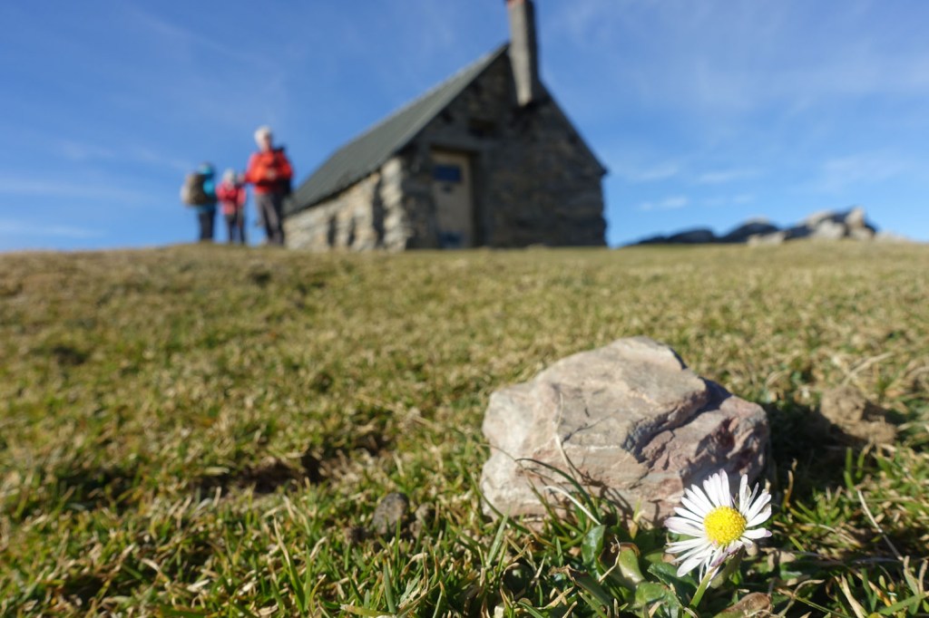 Le cadeau du jour : Une paquerette qui a éclos en ce 8 janvier à 1450 m d’altitude, juste devant la cabane …