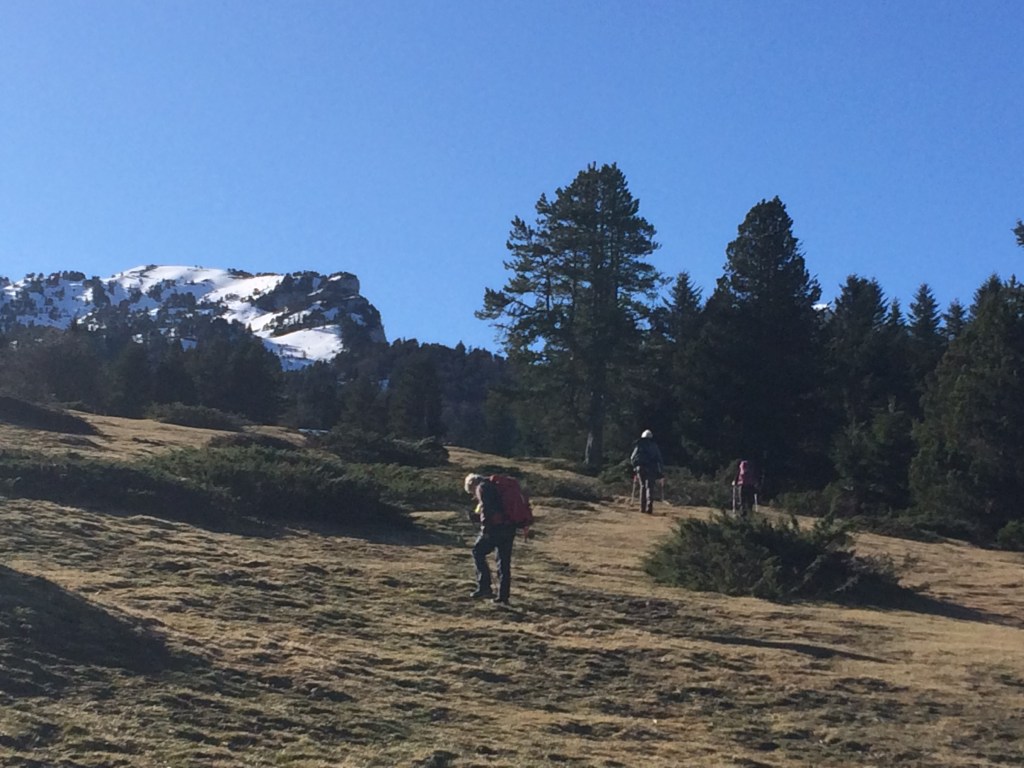 Nous étions tous un peu cassés par les 17 km d’avant-hier, mais le temps magnifique prévu a donné envie à Françoise d’en reprendre un peu, et elle nous a convaincus de faire une petite sortie vraiment tranquille. En épluchant les cartes, ce sont les 500 m de D+ de la cabane d’Ycheus qui ont été retenus.