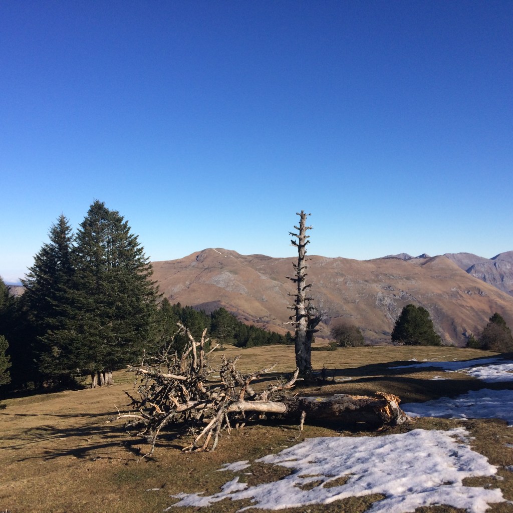 Aujourd’hui notre petit groupe (Françoise et Françoise, Martine, Richard et Olivier) fête la nouvelle année en faisant la première sortie de 2020. L’objectif est de monter au Pic d’Auzu ou aux cabanes de Niouérès à partir du village de Listo . C’est bien en cette saison, parce que c’est un versant Sud sur lequel nous sommes certains de ne pas trouver de neige, et comme la montée se fait sur une piste en pente douce, ce ne sera pas fatigant.