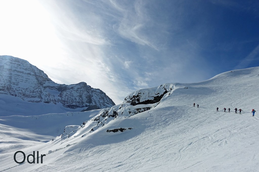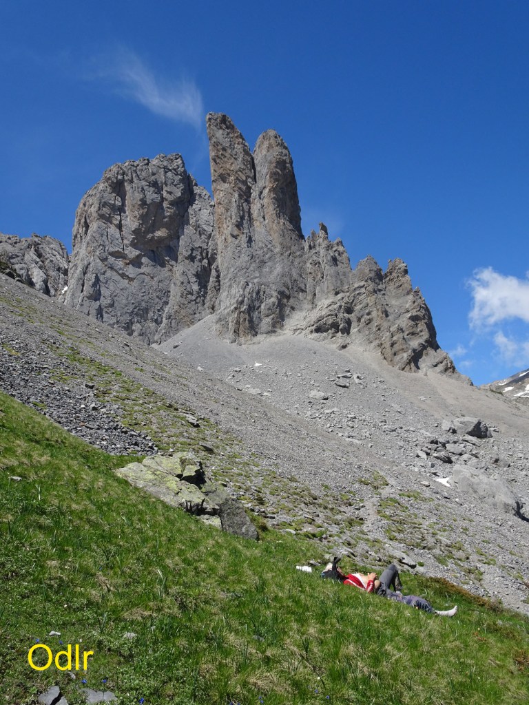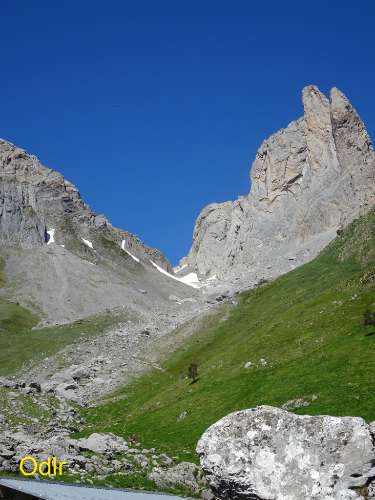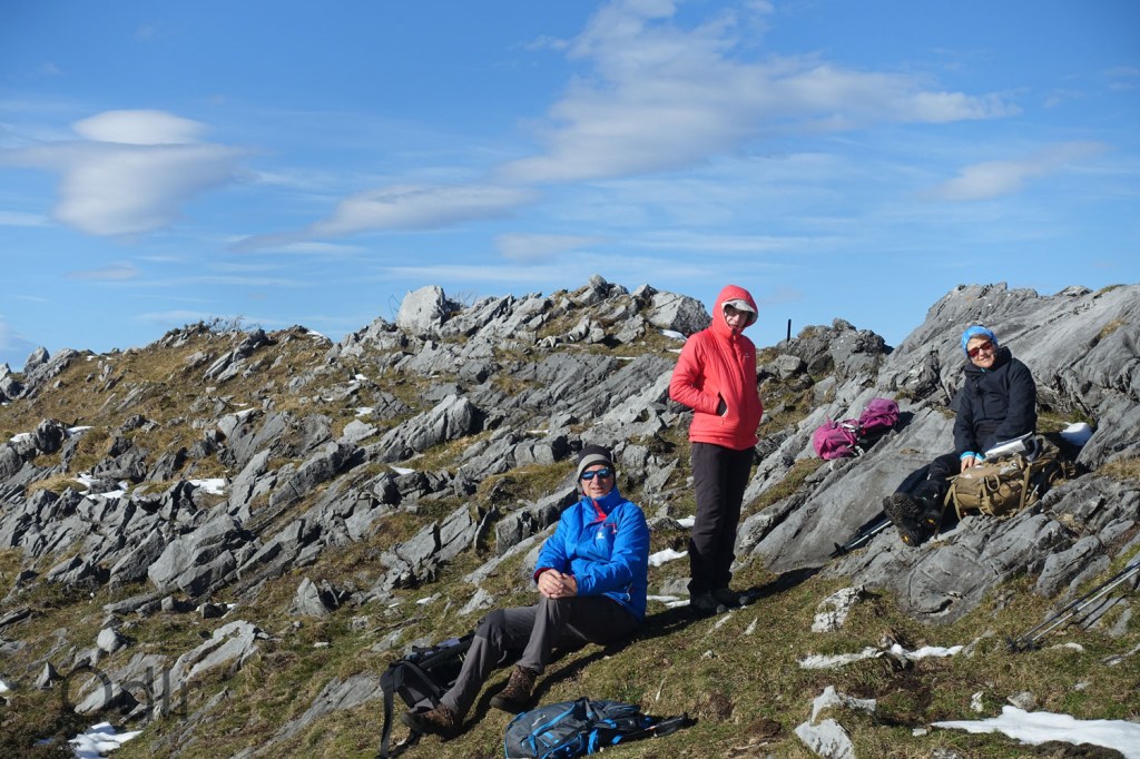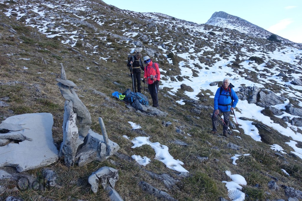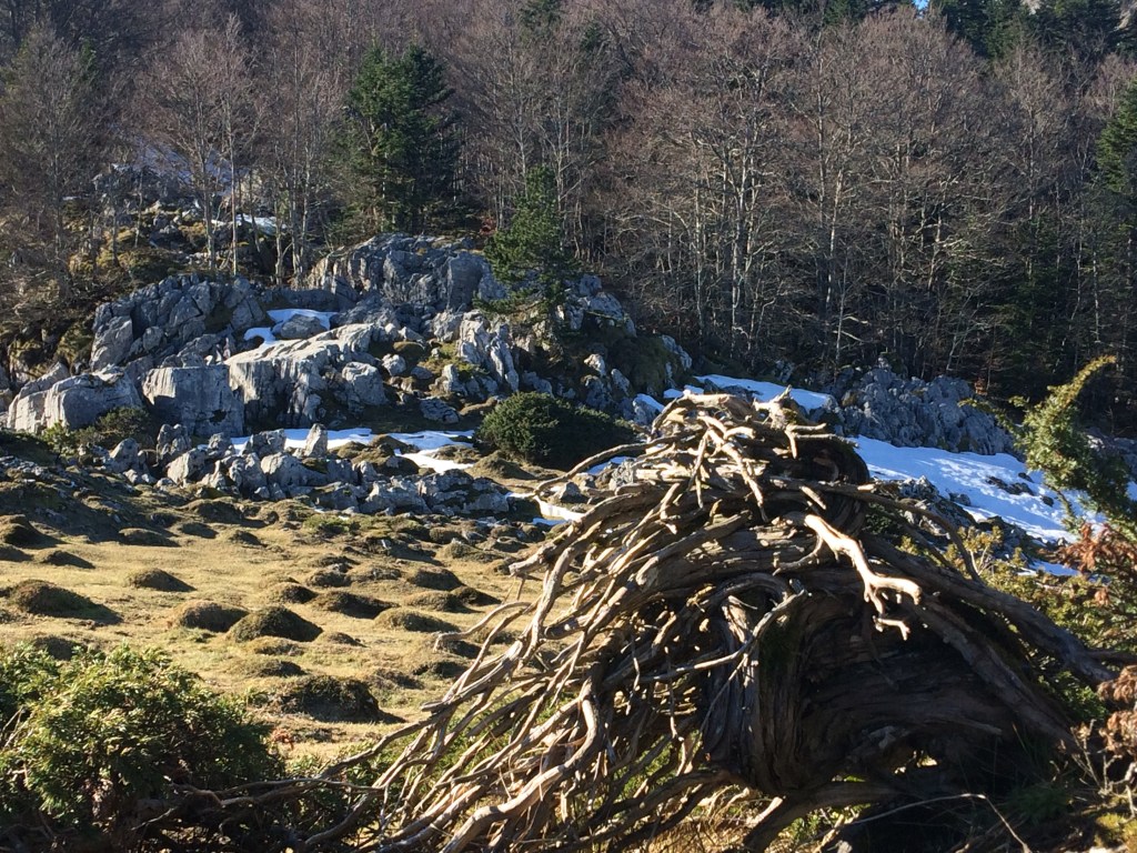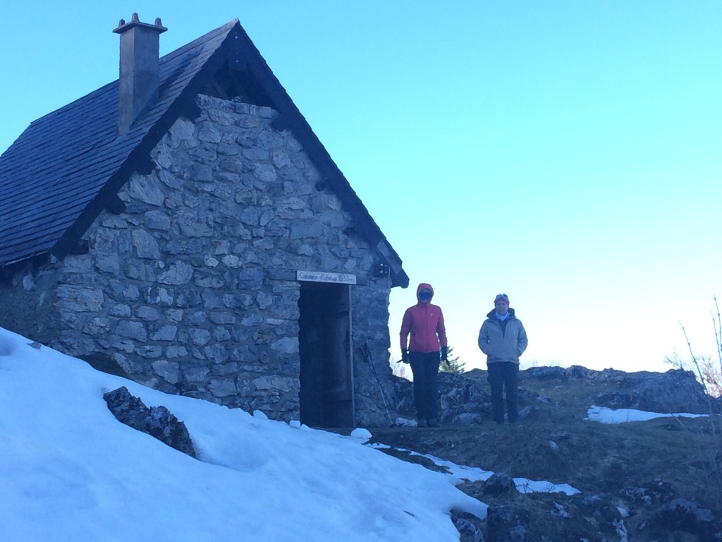 Belle journée ensoleillée, un peu de vent sur les crêtes. La neige a du mal à fondre malgré le soleil. C’est tranquille partout, sur un chemin bien trécé jusuq’à la cabane; ensuite il faut chercher un peu, en se dirigeant en gros au Nord à partir du petit parc à moutons, pour monter en lacets vers la crête en cherchant un peu le chemin dans un lapiaz « soft » . La cabane, bien que n’ayant pas de baie vitrée avec vue montagne, est propre et bien aménagée .