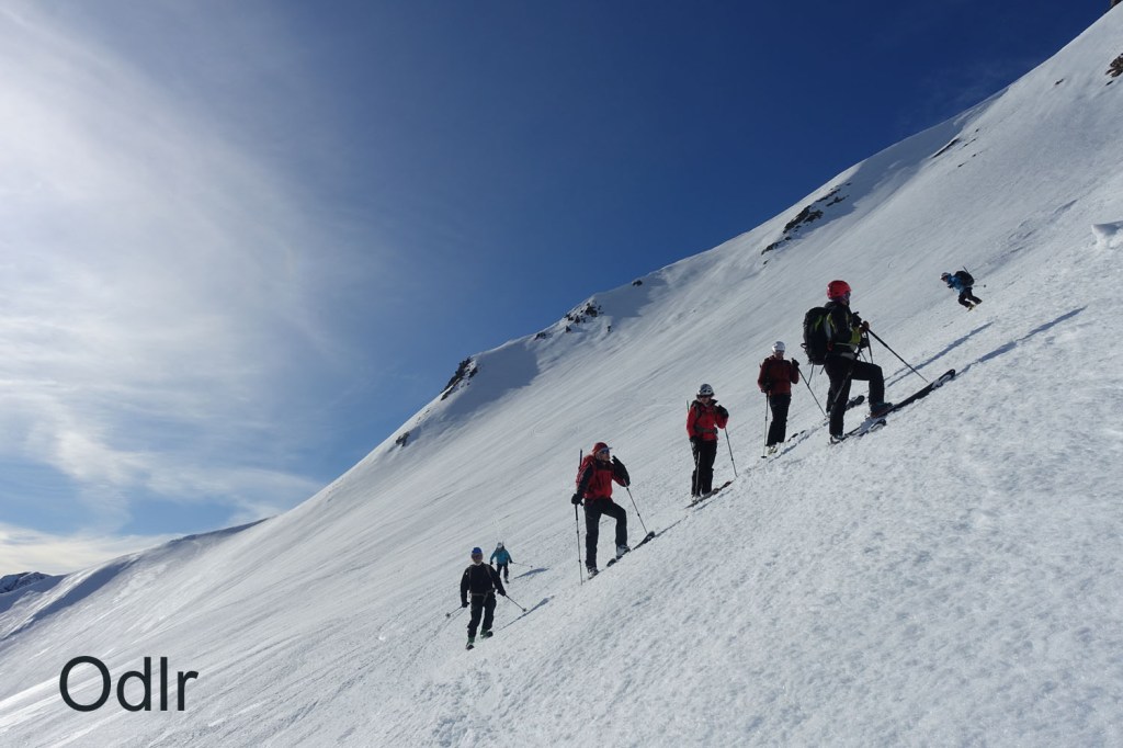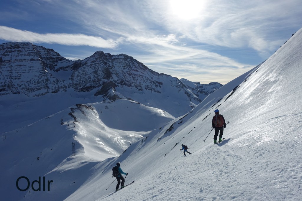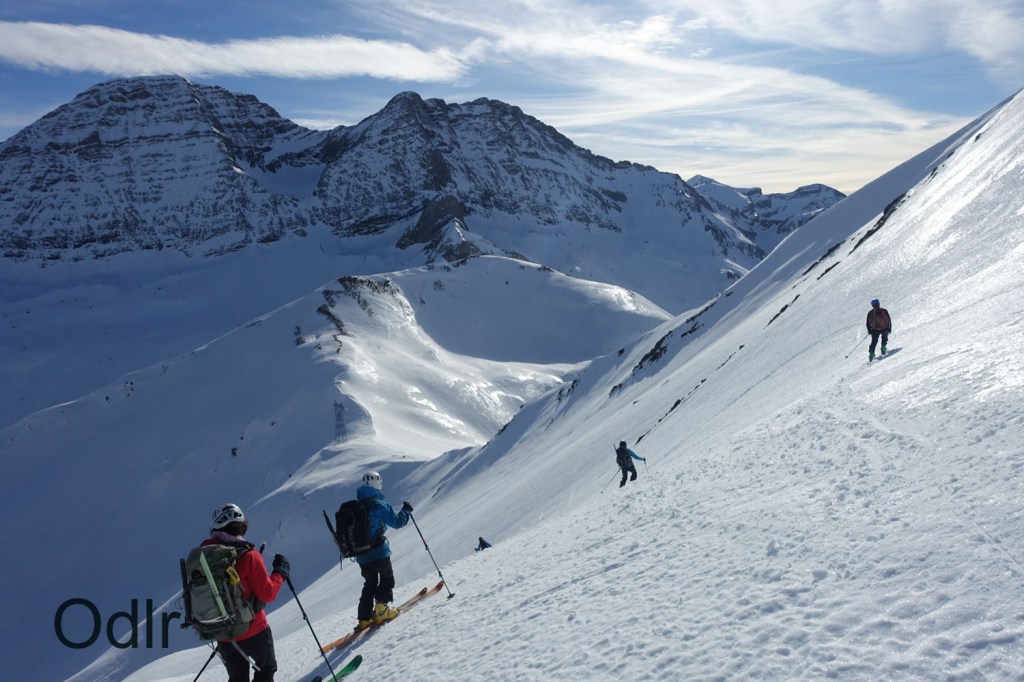 C’est un itinéraire tout à fait praticable en raquettes, le risque de coulmées est faible, sauf en cas de grosse chute au Nord du Col .